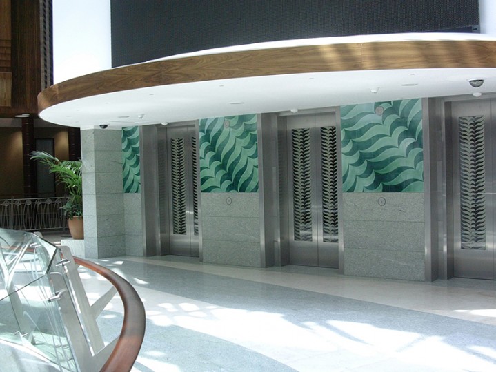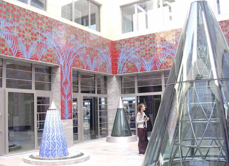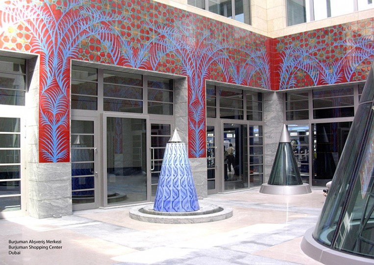 Dubai’nin en eski alışveriş merkezlerinden biri olan 1991’de açılan Burjuman Alışveriş Merkezi’nin yeni binasının girişine, kolonlarına ve asansör çevrelerine, özel palmiye ağacı stilize edilip İznik üslubuna uyarlanmış olarak çinilere işlendi.