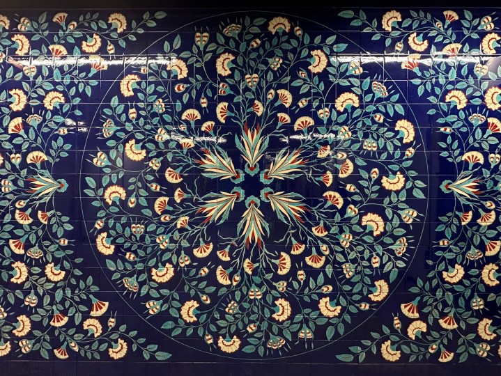 İstasyon içerisinde Bursa’ya özgü çınar, şeftali, kestane, dut, zeytin ve incir motifleri işlenmiş; geometrik tabanlı, çiçek desenli pano çalışmaları ile estetik bir bütünlük sağlanmıştır.