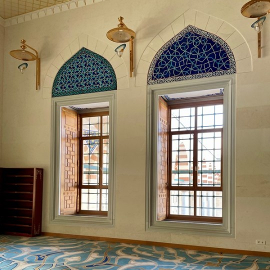 Bunun yanı sıra, minyatür ve rölyef teknikleriyle hazırlanan çini panolar, İznik Vakfı tarafından camiye özel olarak tasarlanıp üretilmiştir. Her bir pano, klasik İznik çinisi geleneğinin modern yorumlarla yeniden ele alınmasıyla oluşturulmuş; detaylı el işçiliği ve yüksek sanat anlayışıyla şekillendirilmiştir.