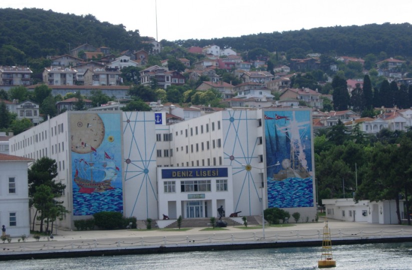 İstanbul Heybeliada Vapur İskelesi’nden adaya gelenleri karşılayan Deniz Lisesi’nin denize bakan ön yüzü için, toplamda 350 metrekare büyüklüğünde iki pano hazırlandı.