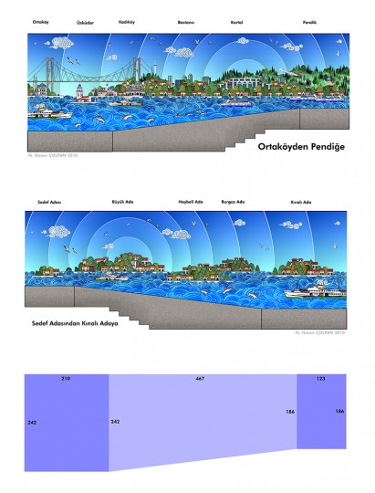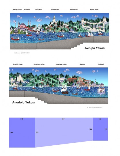 Binanın halk girişlerinin sol duvarına 822,5cm x 376cm boyutunda Hisarlar minyatürü, sağ duvarına da yine aynı boyutlarda tarihi yarımada minyatürü üretildi. B bloktaki engelli merdivenlerine de farklı ebatlarda 8 adet İstanbul minyatürü panolar yapıldı.