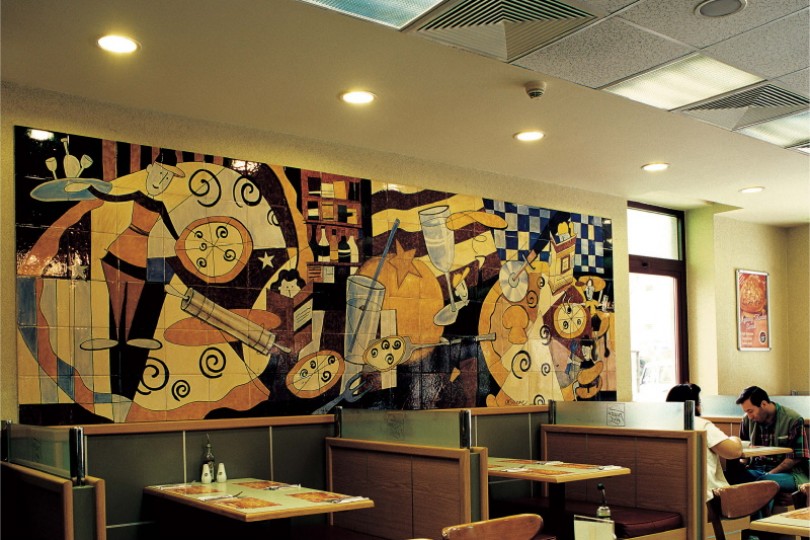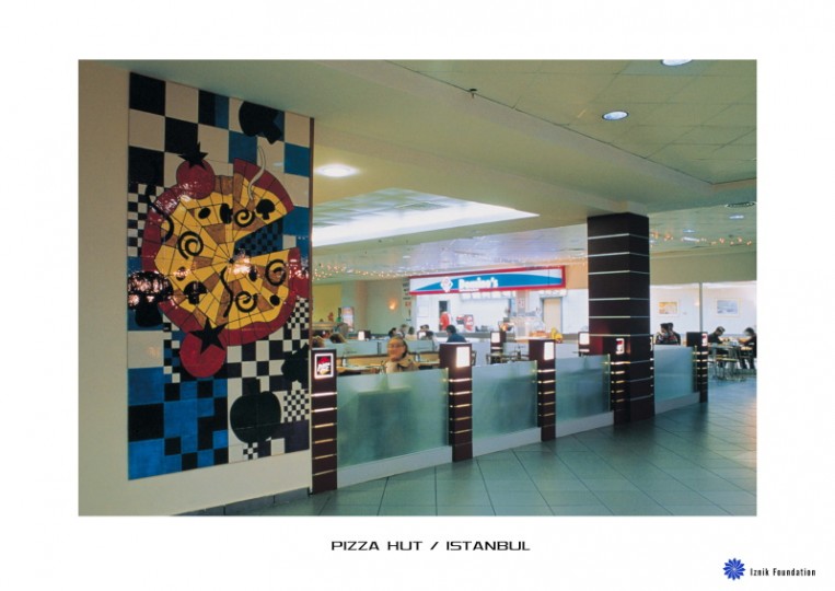 Uluslarası fast food zinciri Pizza Hut’ın Akmerkez ve Profilo Alışveriş Merkezi’ndeki restoranlarına İznik Çini panoları çalışıldı.