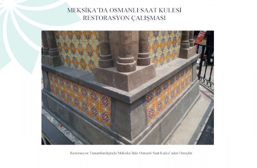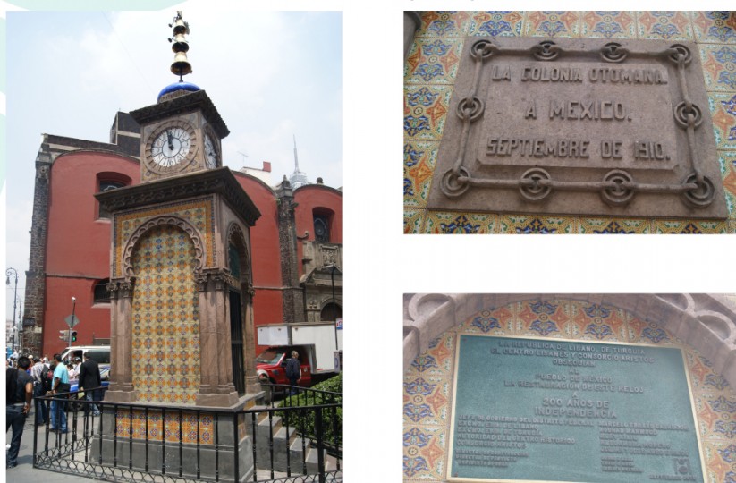 İstanbul Üsküdar’daki Horhor Çeşmesi’nde bulunan çinilerle aynı tasarımın kullanıldığı kulenin üzerinde "La Colonia Otomana a Mexico - Septiembre de 1910" (Osmanlı Cemaatinden Meksika'ya - Eylül 1910) ibaresi yazılı levha bulunuyor.