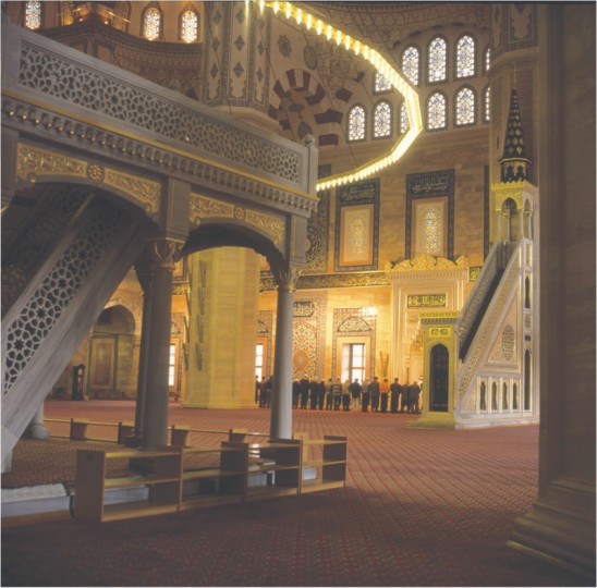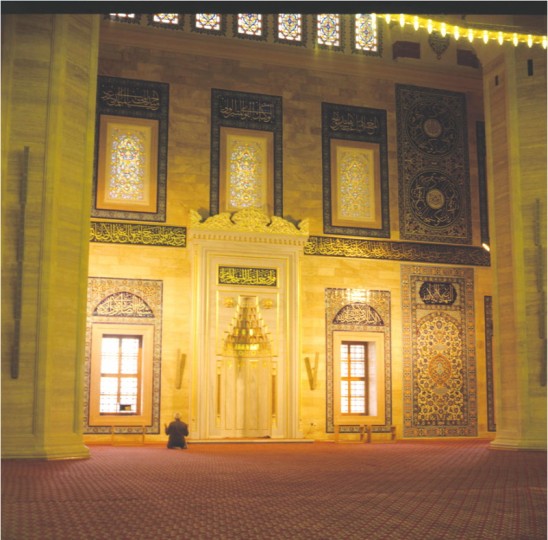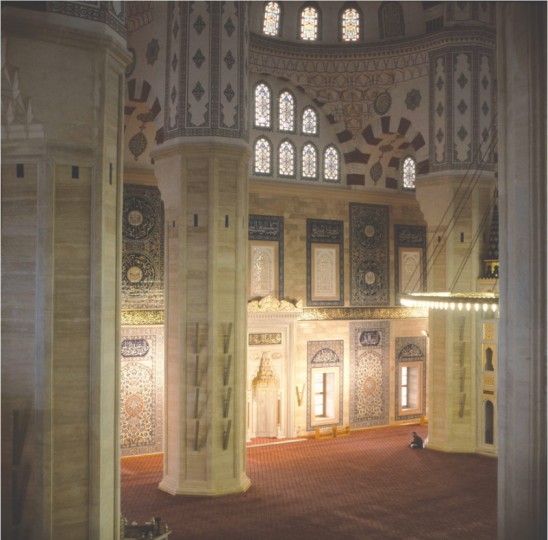 Projesi Mimar - Mühendis Necip Dinç tarafından hazırlanan, hat eserlerinin tamamı Hattat Hüseyin Kutlu’ya ait caminin iç duvarları klasik İznik çinileriyle kaplandı. Büyüklük bakımından Kıble cephesi için İznik Vakfı çinileriyle hazırlanan dört pano, dünyadaki en büyük cami panolarıdır.