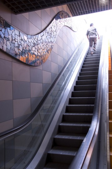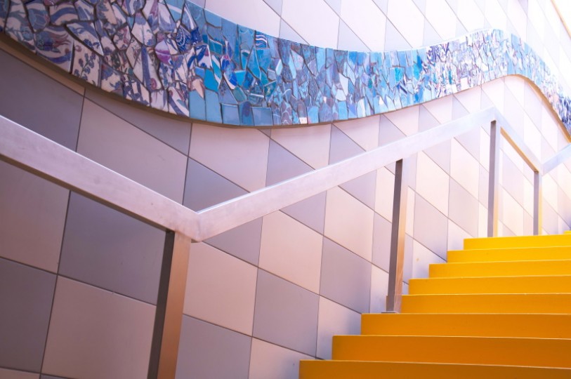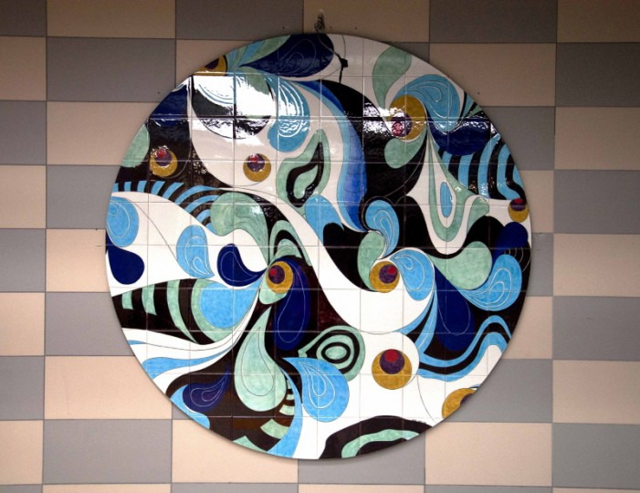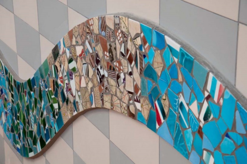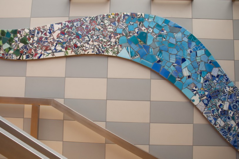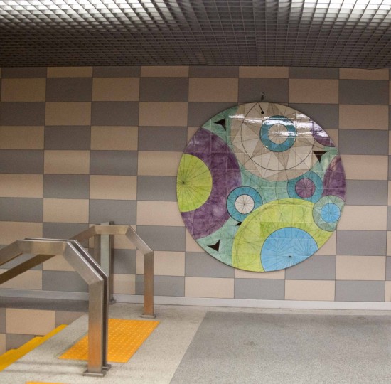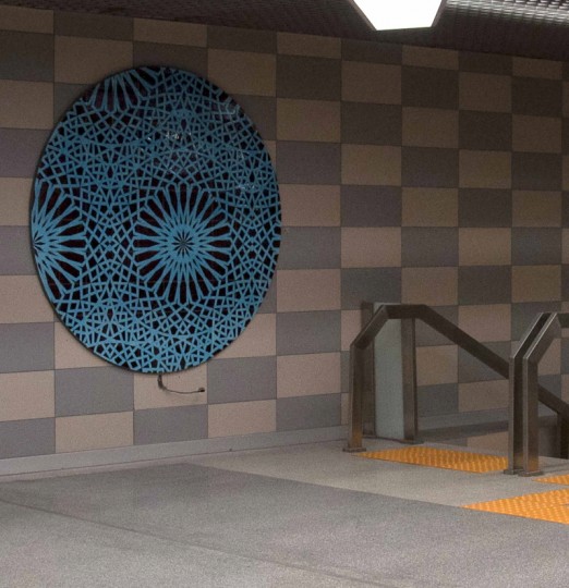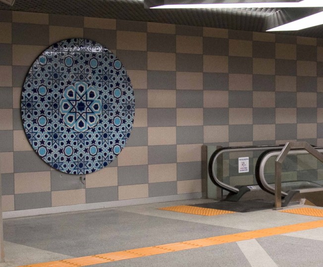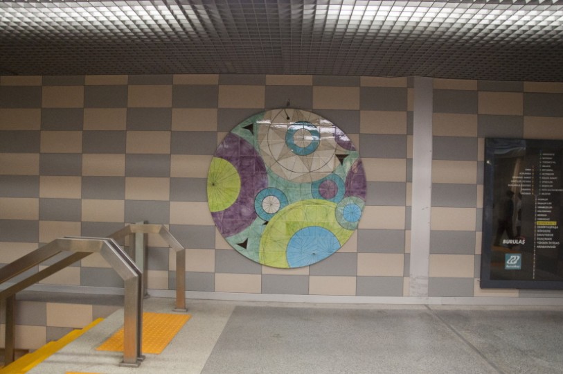 Bursa Metrosu Şehreküstü istasyonunun içine dairesel geometrik usulde çini panolar, merdivenlerine de kırık çinilerden dalga şeklinde bir pano çalışması yapıldı.
