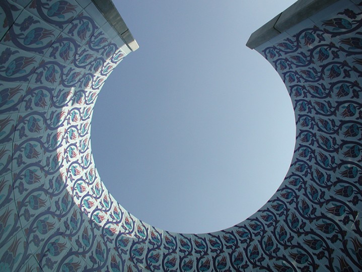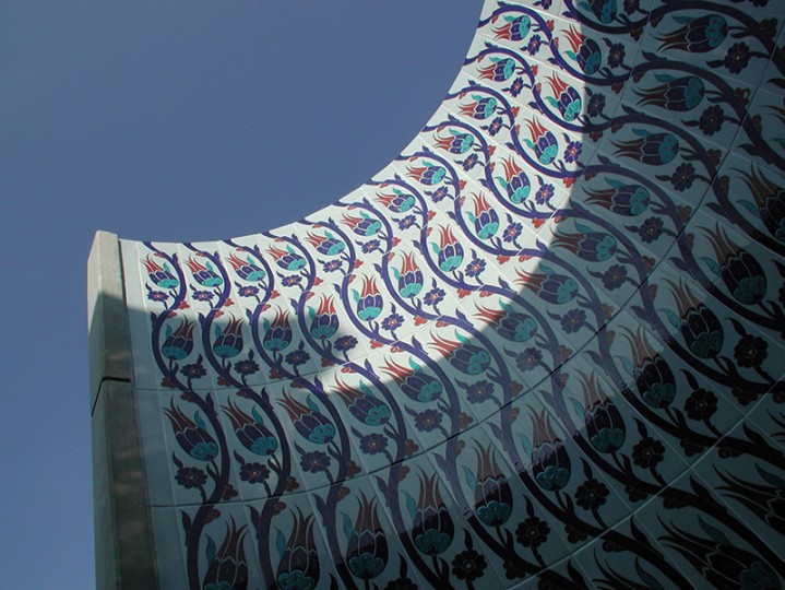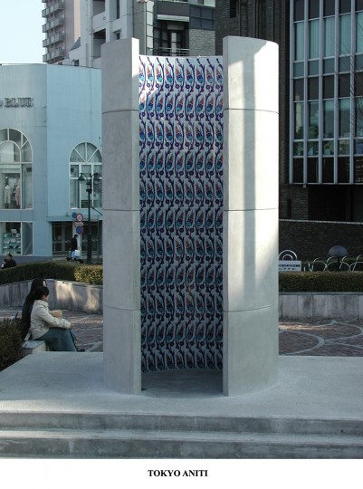 2 metre çapındaki beton kaide üzerine 4 metre yükseklikte bulunan anıtın iç yüzeyi, ilk kez Kanuni Sultan Süleyman’ın damadı Rüstem Paşa’nın 1561’de İstanbul’da yaptırdığı camiide kullanılan, usul usul dalgalanan lale motifli İznik çinileriyle kaplandı. Lalelerin kobalt mavi, kırmızı ve turkuaz renkleri gerçek bir renk patlaması oluştururken, çinilerin düşey ekseni vurgulayacak biçimde ölçülendirilmiş olması ise, algının gökkubbeye odaklanmasını kolaylaştırdı. Karanlık çöktüğünde, zeminden yükselen güçlü bir ışık, çiniyle kaplı iç yüzeyi aydınlatarak parlak bir nirengi noktası yaratıyor. Anıtın mimarı Han Tümertekin’in belirttiği gibi anıtın içe odaklanmış kimliği, Tokyo’nun karmaşık gündelik yaşamından uzakta huzurlu bir sığınak oluşturuyor.