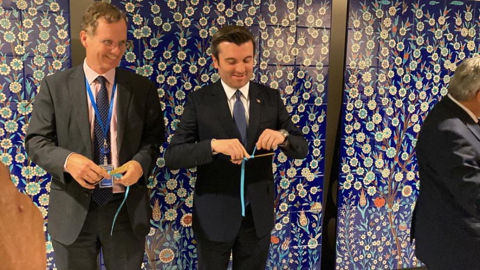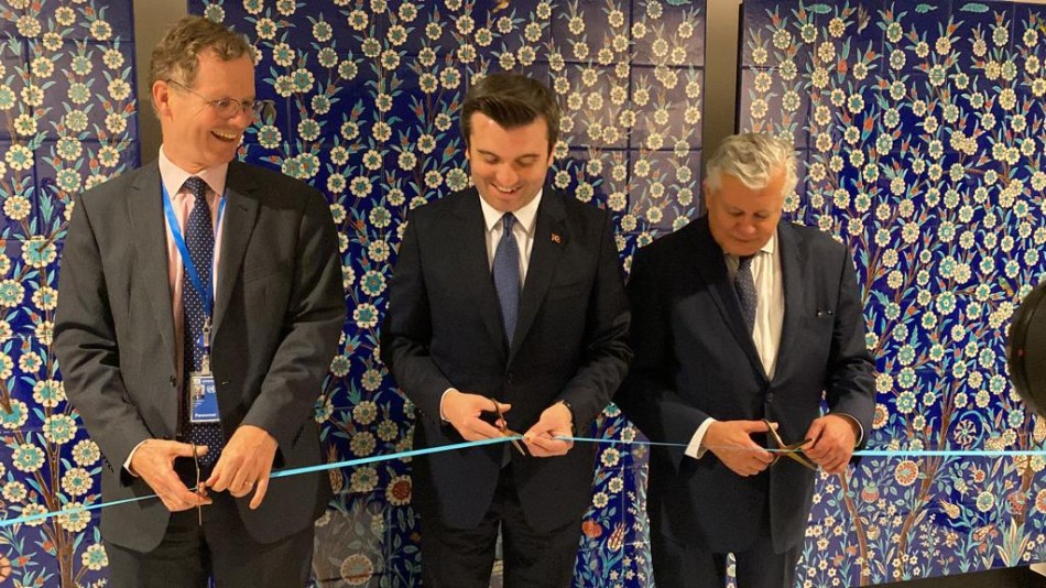 Dünyanın en önemli sivil toplum kuruluşlarından Unesco’nun Paris Merkez Binası için 630cm x 240cm boyutlarında hazırlanan pano vakfın İznik’teki atölyelerinde, tamamen el işçiliğiyle üretildi. 30cm x 30cm ebatındaki 168 karodan oluşan, 15 m2’nin üzerindeki pano için hazırlanan tasarımda klasik çini sanatının tüm öğelerine yer verildi. İznik Çinileri’nin en önemli özelliği olan “geometri ile nesnelerin dengeli uyumu” panoda dikkat çekmekle beraber; geleneksel çini desenlerinde yer alan flora görüntüsü mavi ve kırmızı tonlarının ağırlığında tasarıma yansır. İznik Çini sanatında 540 farklı formda kullanılan lale motiferi de panoda göze çarpmaktadır.
